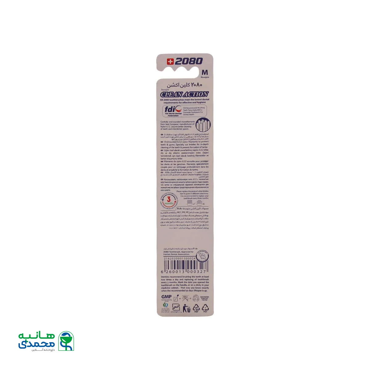هر 3 ماه یکبار نسبت به تعویض مسواک کلین اکشن متوسط 2080 اقدام نمایید
