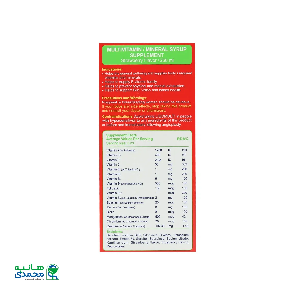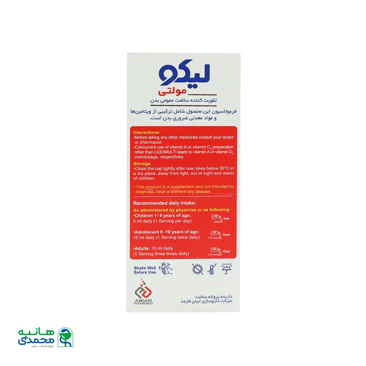 شربت لیکو مولتی ابیان فارمد 250 میلی لیترAbian Pharmed Liqo Multi Syrup 250 ml