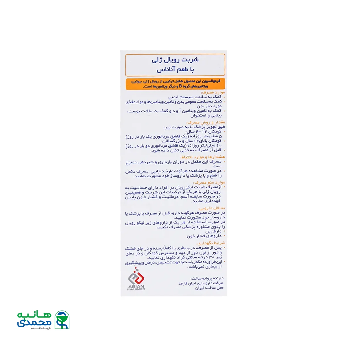 ویژگی های شربت لیکو رویال ژلی ابیان فارمد