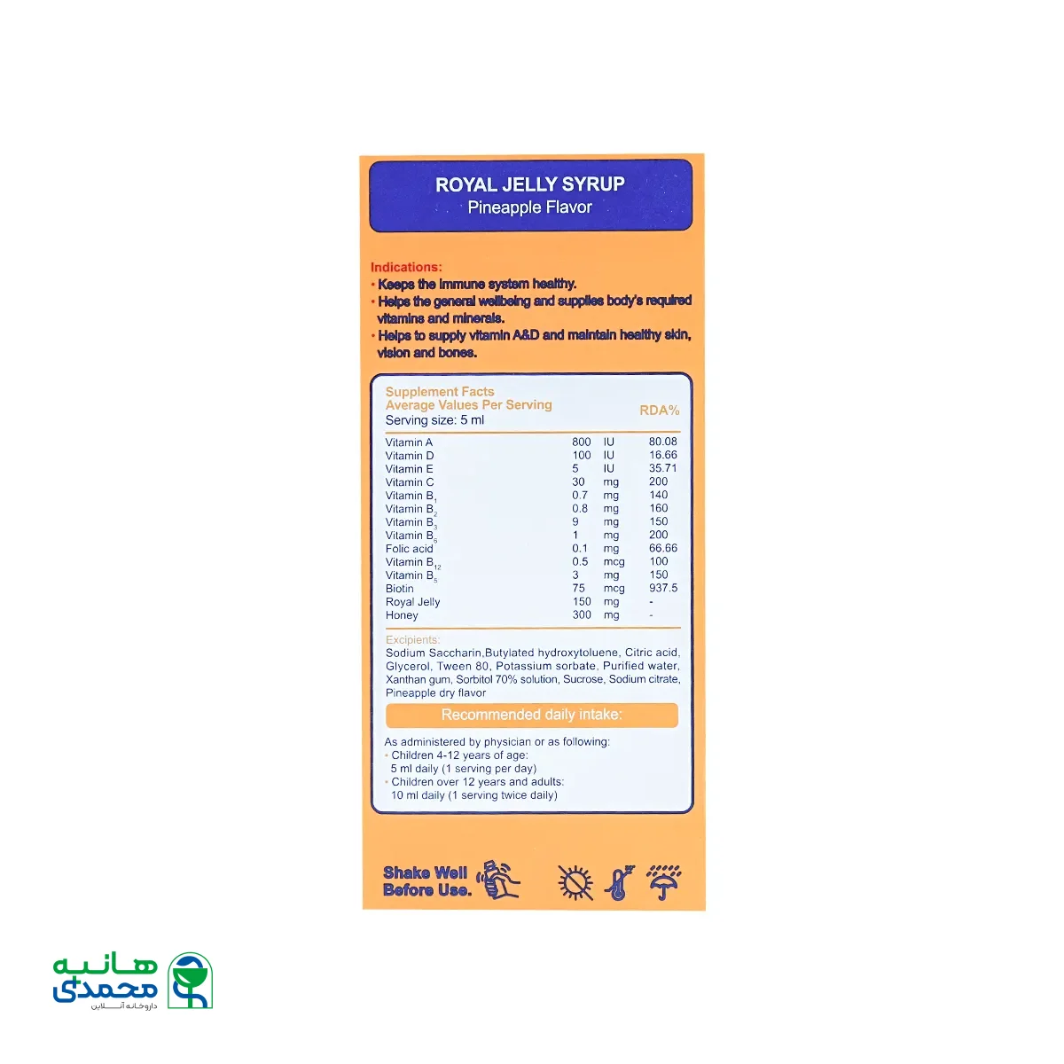 - حاوی ژل رویال و ویتامینهای گروه B، A، D، C و E