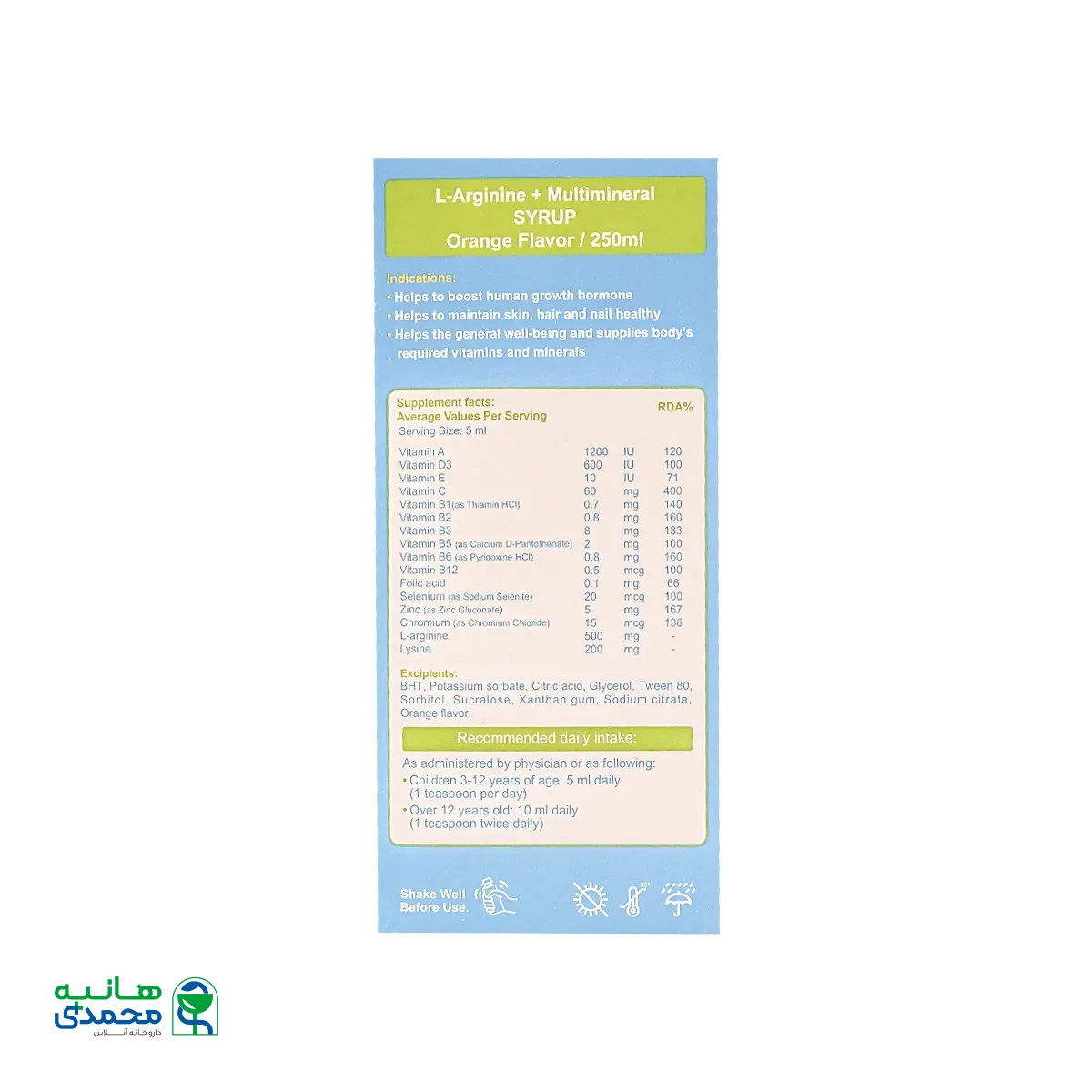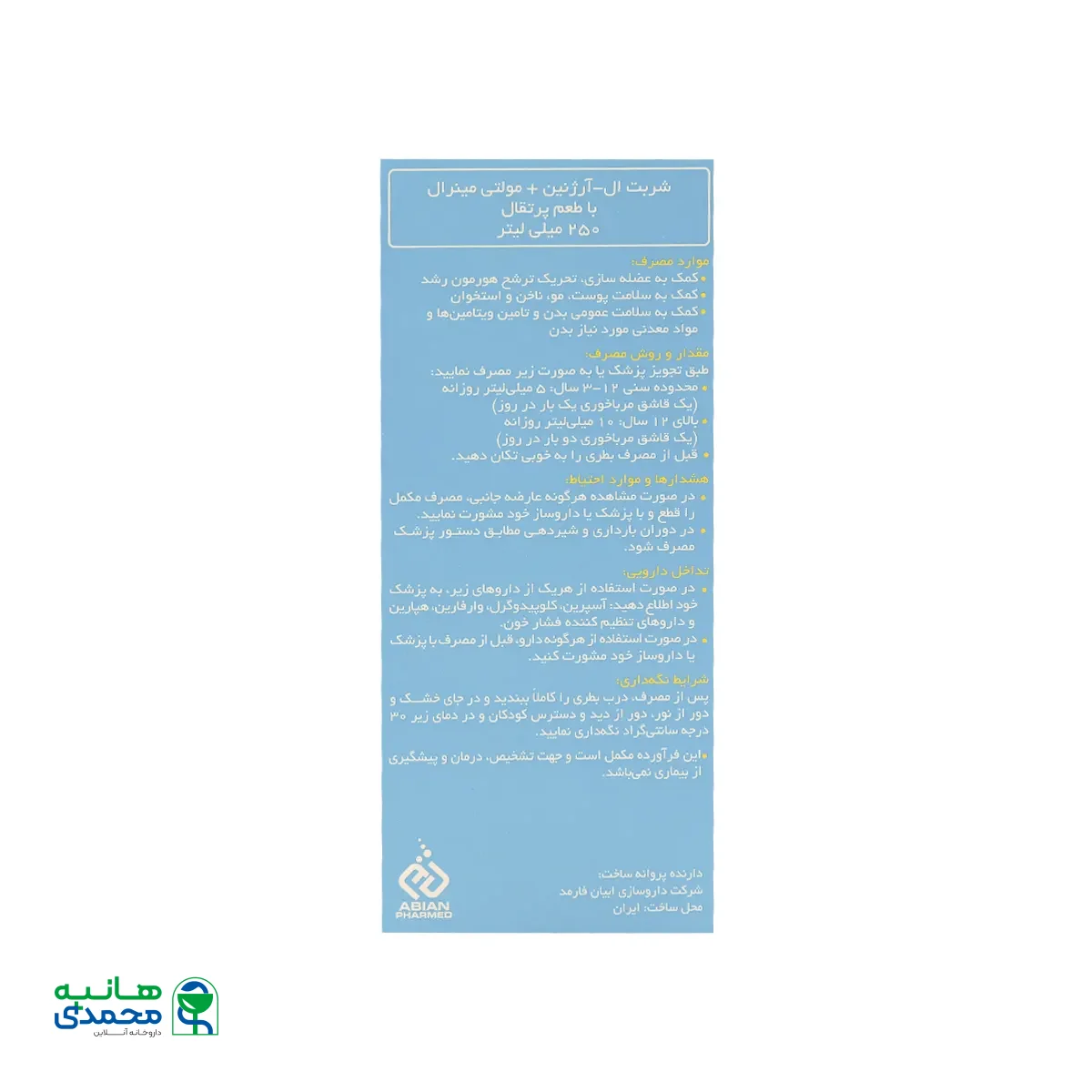 طبق تجویز پزشک یا به صورت زیر از شربت ال آرژنین + مولتی مینرال ابیان فارمد استفاده نمایید:
