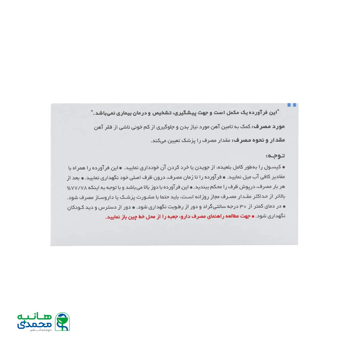 • 80 میلی گرم آهن در هر کپسول