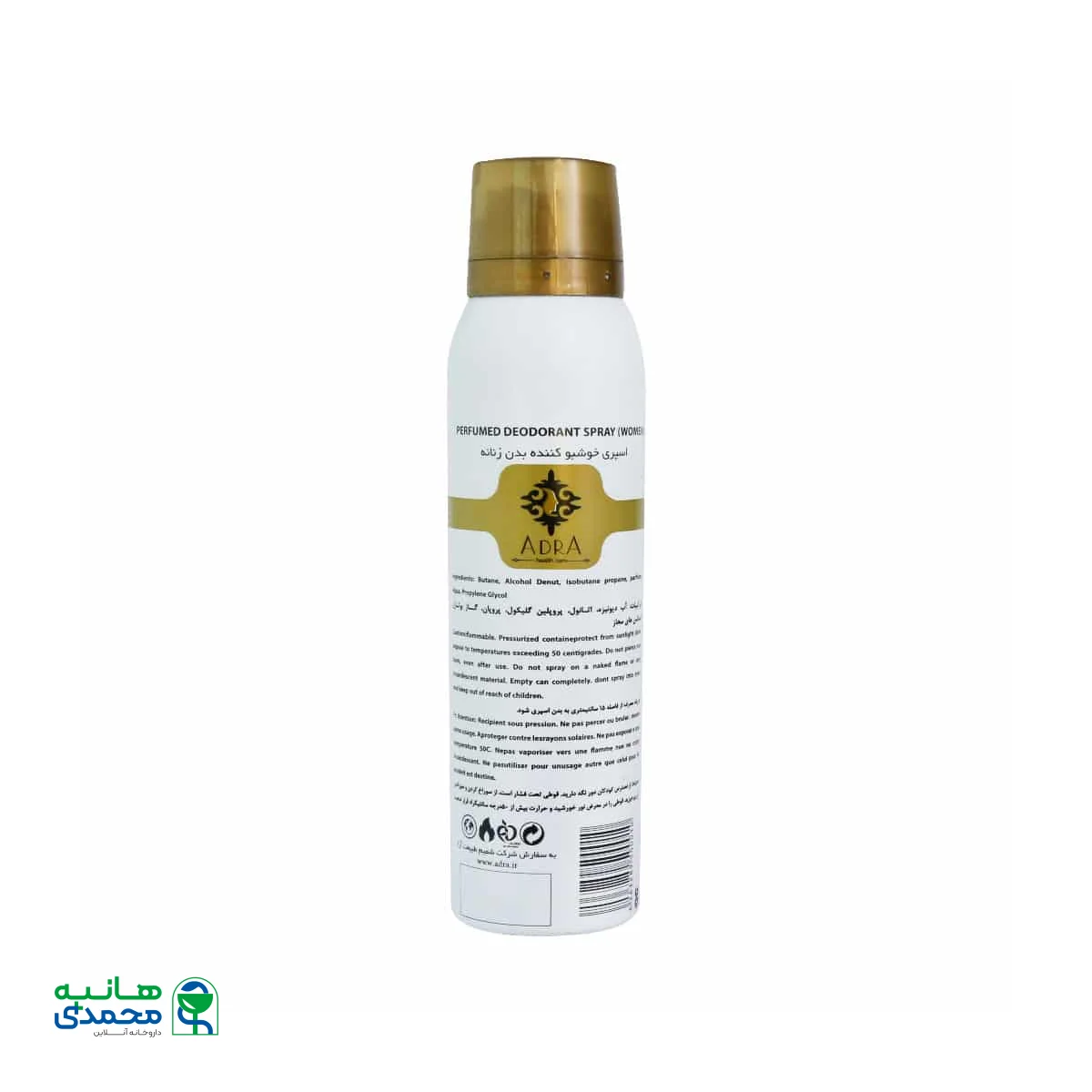 قوطی اسپری زنانه آدرا را در معرض نور خورشید و حرارت بیش از 50 درجه سانتی گراد قرار ندهید.