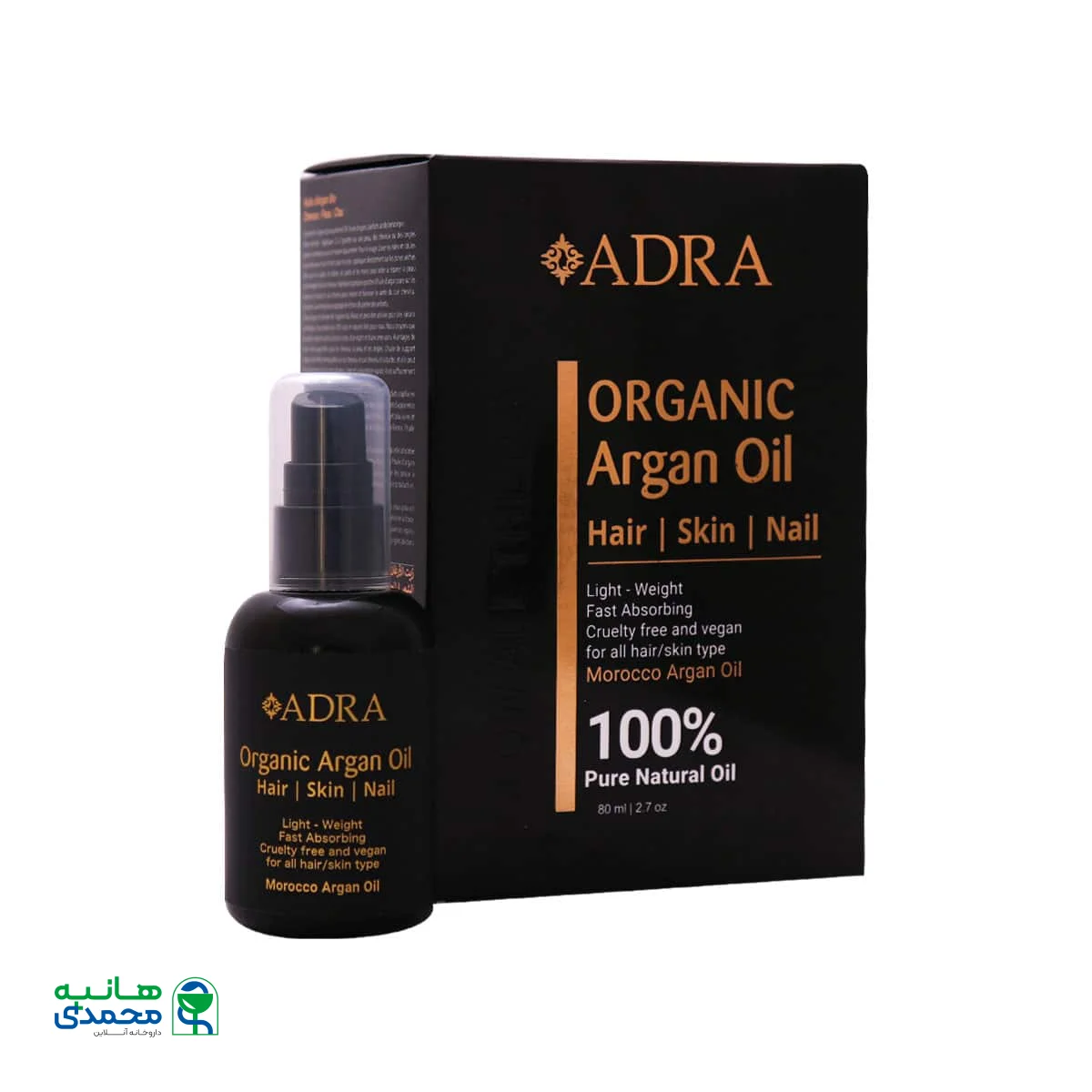 روغن آرگان ارگانیک آدرا حاوی روغن 100 درصد ارگانیک بوده که به سلامت پوست، مو و ناخن‌های شما کمک می‌کند تا سالم و زیبا شوند. این محصول بافت سبک و جذب سریعی دارد و آن قدر ملایم است که حتی برای حساس‌ترین پوست‌ها قابلیت استفاده دارد.
