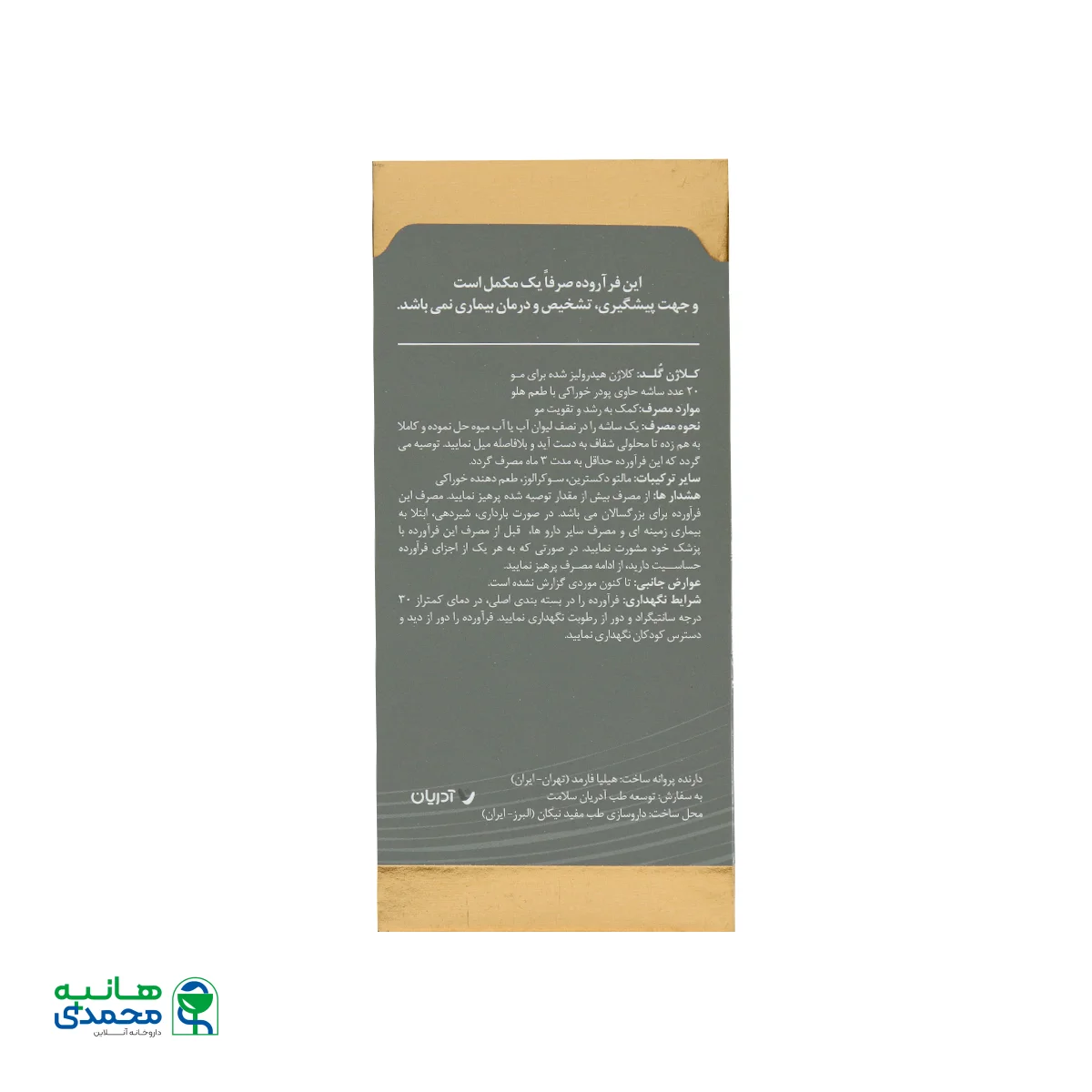 ساشه کلاژن گلد مو و ناخن آدریان صرفا مکمل است و جهت پیشگیری، تشخیص و درمان بیماری نیست.