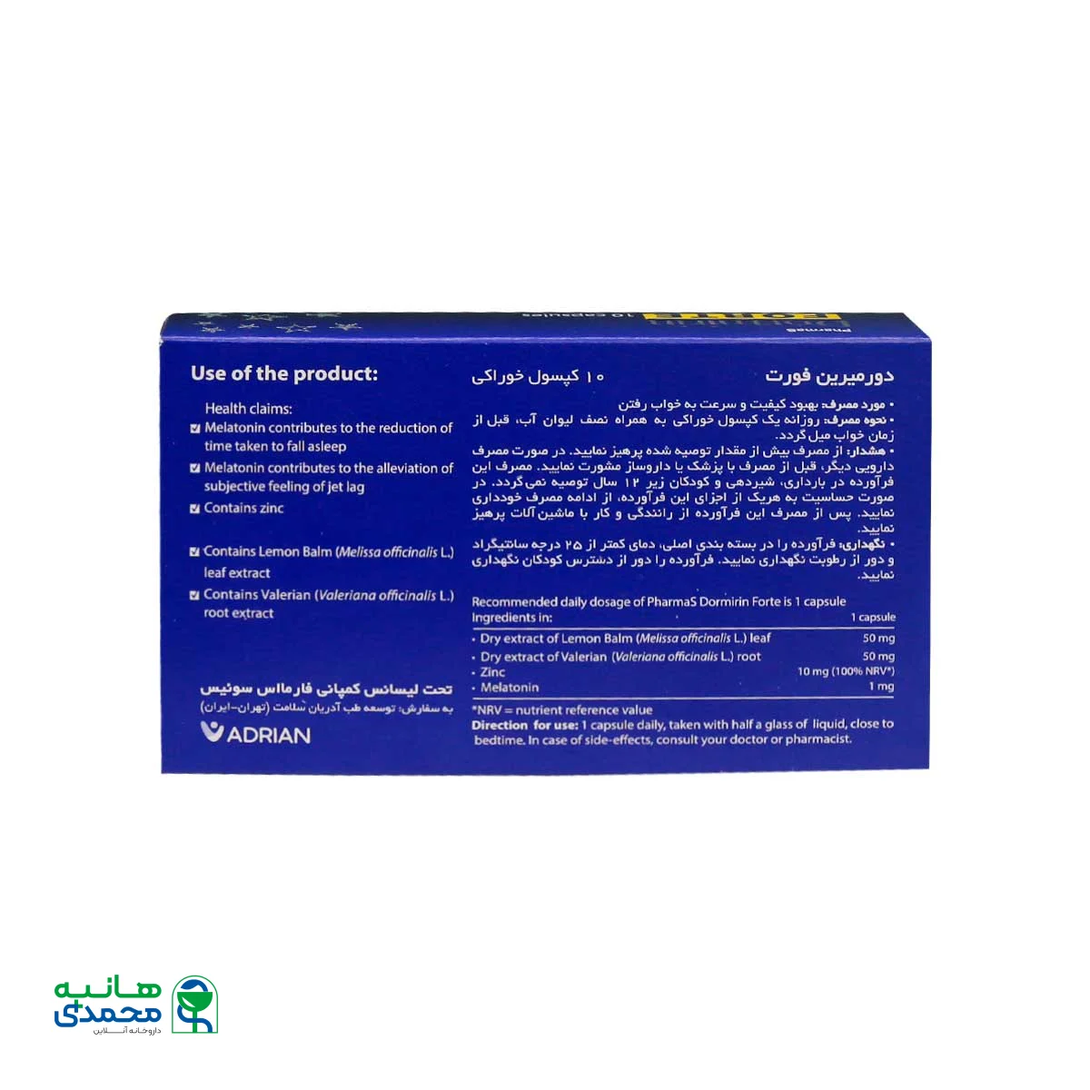 کپسول خوراکی دورمیرین فورت آدریان 10 عددAdrian Dormirin Forte 10 Capsules