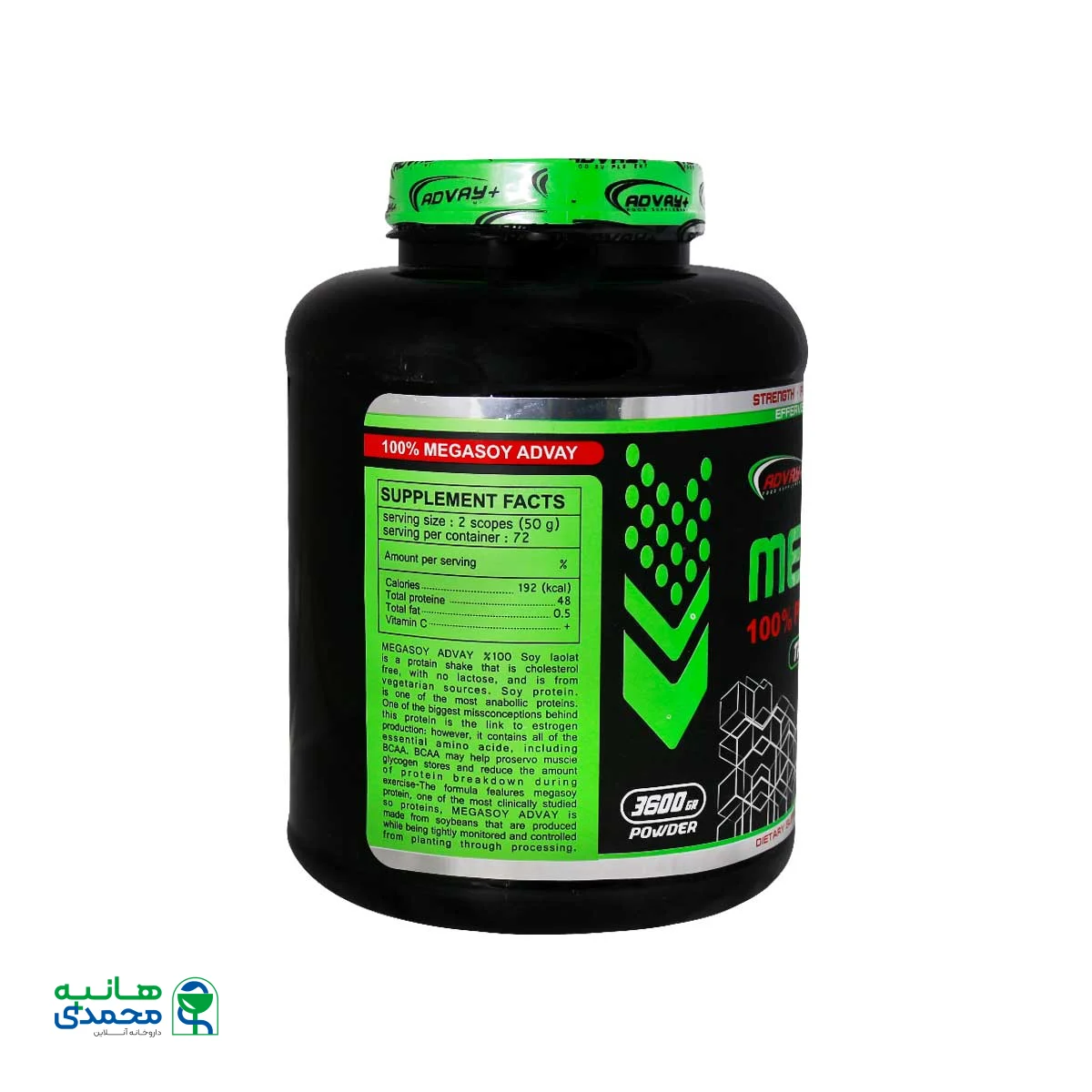 پروتئین سویا موجود در مکمل megasoy به عنوان بهترین و با کیفیت‌ترین پروتئین گیاهی دنیا شناخته شده و حاوی همه 9 آمینواسید ضروری مورد نیاز بدن در طول روز است. سویا دارای 30 درصد کربوهیدرات، 36 درصد پروتئین، 19 درصد روغن و در نهایت 14 درصد رطوبت است. وارد کردن سویا به رژیم غذایی، علاوه بر کاهش احتمال التهاب و کوفتگی عضلات، با تامین آمینواسیدهای مورد نیاز بدنتان موجب شده ماهیچه‌هایی حجیم‌تر به دست آورید.
