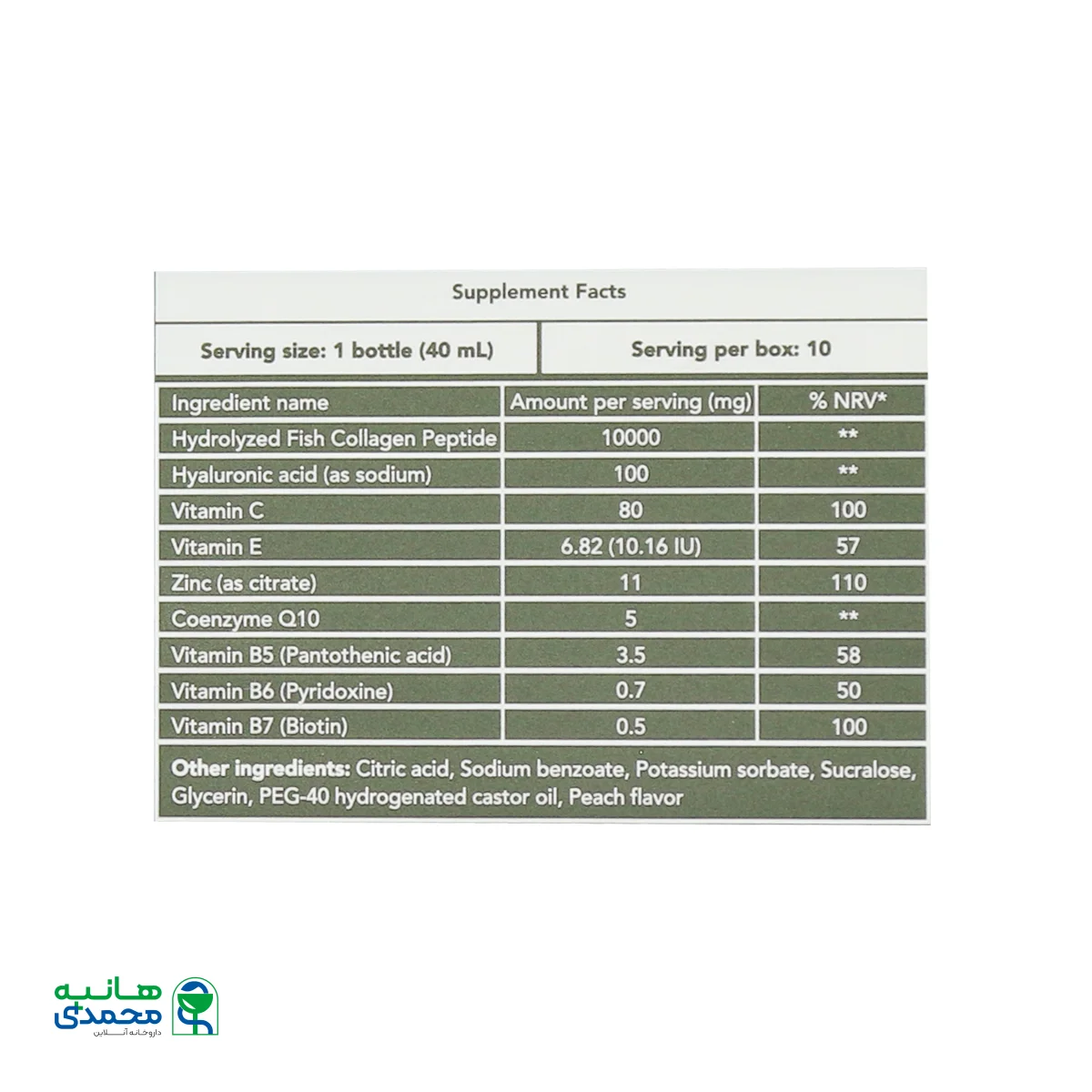 یک بطری 40 میلی لیتری فراورده را نیم تا یک ساعت قبل از وعده غذایی اصلی میل نمایید. به منظور مشاهده بهترین اثربخشی، توصیه می‌شود که استفاده از این محصول را حداقل به مدت 8 تا 12 هفته ادامه دهید و برای حفظ اثرات ایجاد شده توصیه می‌شود که محصول به صورت مستمر مصرف شود. با توجه به میزان کلاژن موجود در محصول، پیشنهاد می‌شود که این فراورده به صورت یک روز در میان میل گردد.