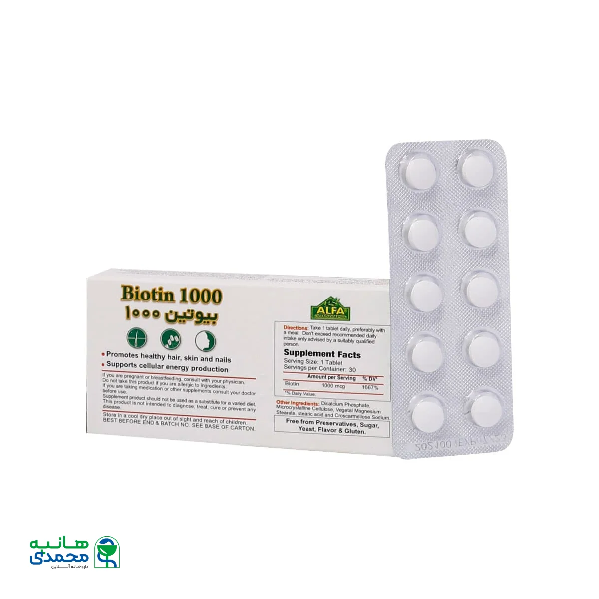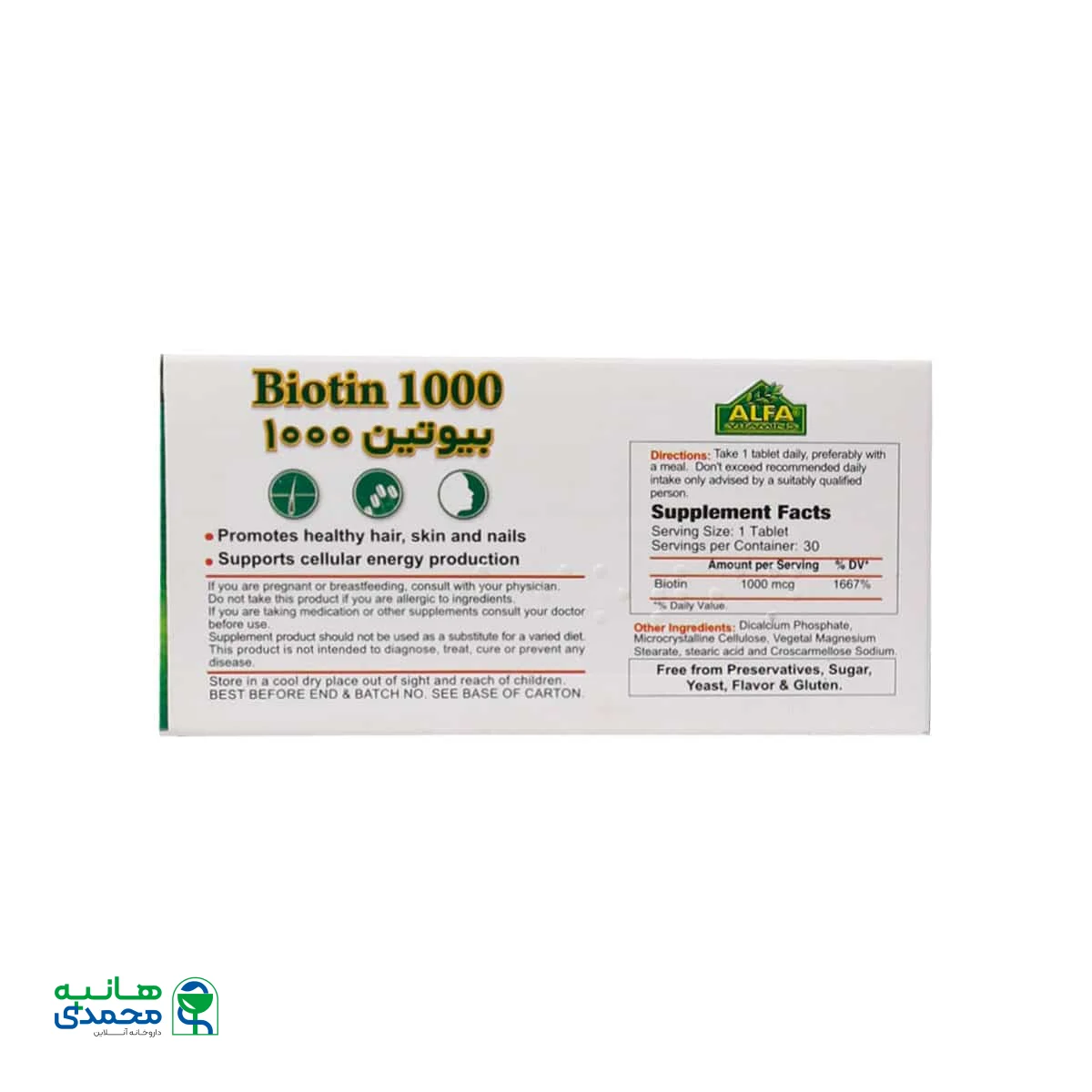 مشخصات کلیAlfa Vitamins Biotin 1000 Mcg 30 Tablets