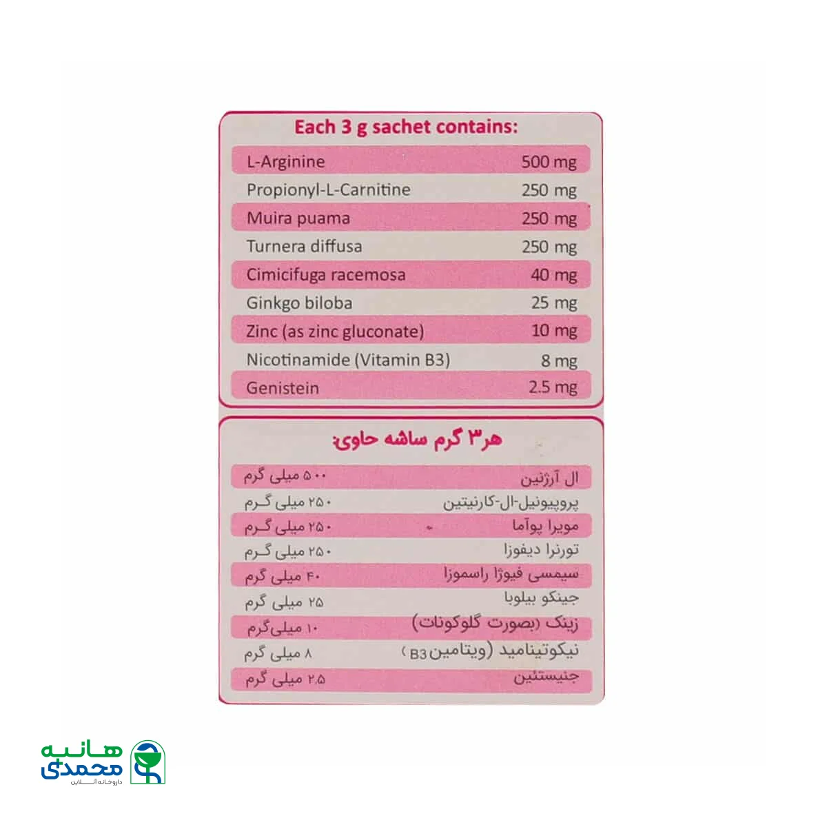 ال آرژنین هم با گشاد سازی عروق خونی میتواند خونرسانی به عضلات را بیشتر کرده و همین خونرسانی به عضلات جنسی باعث تحریک جنسی و افزایش میل جنسی میشود. زینک موجود در این مکمل به تقویت سیستم ایمنی کمک موثری میکند. یکی دیگر از ترکیبات موجود در این مکمل ویتامین B3 است که بر تولید هورمونهای آدرنال شما تاثیر میگذارد و به شما در مدیریت استرس و بهبود علاقه جنسی کمک میکند.