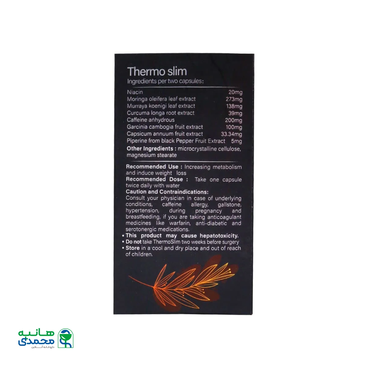 کپسول ترمو اسلیم آمیتیس نیک دارو یک مکمل غذایی جهت کاهش وزن است. این کپسول 100% گیاهی بوده و نام مواد شیمیایی در ترکیبات آن به چشم نمی‌خورد. ترمو اسلیم حاوی 7 نوع گیاه بوده و بدون بروز عوارض، شما را به اندام ایده آل‌تان می‌رساند. همانطور که می‌دانید اضافه وزن و چاقی بیش از حد عوارض خطرناکی همچون افزایش فشار خون، آرتروز و افسردگی را در پی دارد. چاقی بدن را در برابر ترشح انسولین مقاوم کرده و خطر ابتلا به دیابت نوع 2 را در افراد افزایش می‌دهد.