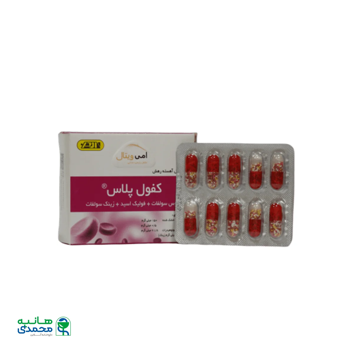 کپسول کفول پلاس امی ویتال جهت رفع کم خونی به بازار عرضه شده است. این محصول حاوی فروس سولفات، فولیک اسید و زینک سولفات است. بیماری کم خونی زمانی بروز پیدا می‌کند که تعداد هموگلوبین خون کاهش پیدا کند. هموگلوبین به گلبول‌های قرمز خون در حمل اکسیژن از ریه به تمام اندام‌های بدن کمک می‌کند. رنگ قرمز خون نیز به دلیل وجود هموگلوبین آن است. این عارضه فقط با آزمایش خون قابل تشخیص است. کم خونی ممکن است تحت تأثیر عوامل مختلفی اتفاق بیفتد که مهم‌ترین آن‌ها کمبود آهن در بدن است، اما علت تمام کم‌خونی‌ها فقر آهن نیست. عوامل متعددی در بروز کم خونی نقش دارد. گاهی این هموگلوبین توسط مغز استخوان تولید نمی‌شود و در برخی موارد این هموگلوبین‌ها به صورت خونریزی از بدن دفع می‌شوند.