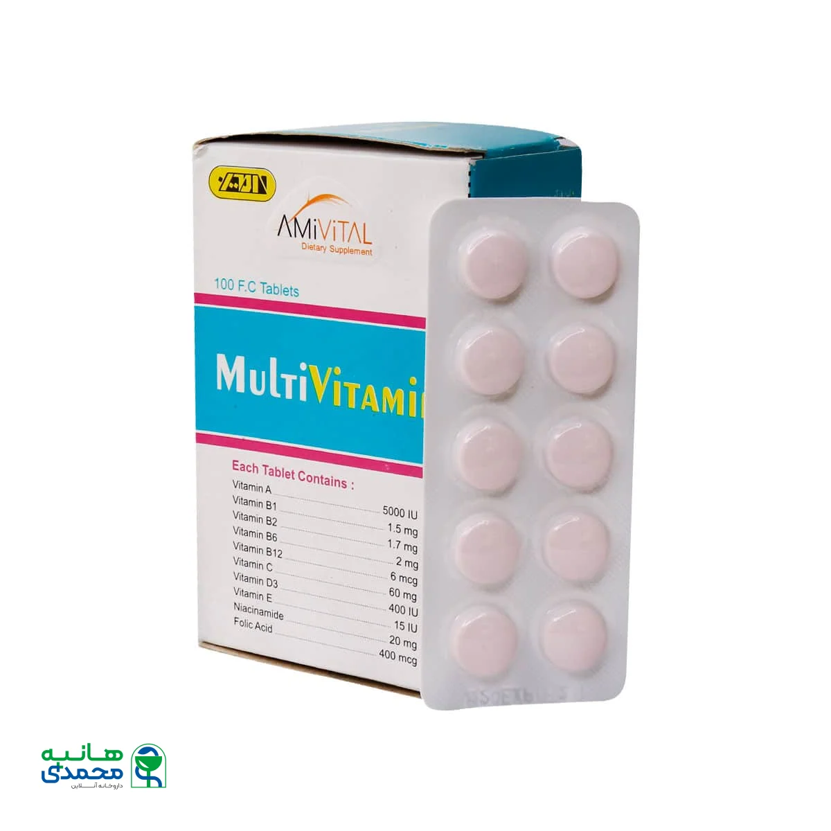قرص مولتی ویتامین امی ویتال 100 عددAmivital Multivitamin 100 FC Tablets