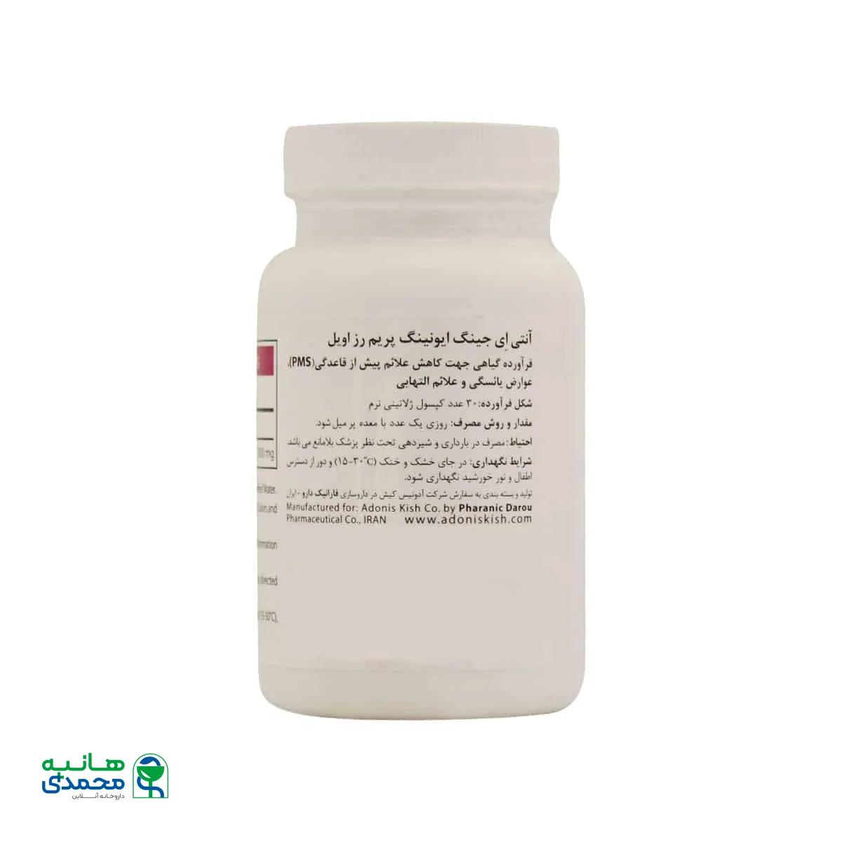کپسول پرایم رز آنتی ایجینگ تحت برند Anti aging به سفارش شرکت آدونیس کیش در کارخانه داروسازی دانا تولید شده است. روغن گل مغربی (گل پامچال) یکی از بهترین کشفها در زمینه طب پیشگیری است. خواص روغن گل مغربی مربوط به مقدار زیادی اسید چرب گاما- لینولنیک اسید (GLA) در آن است. در واقع روغن گل مغربی بیشترین مقدار این اسید چرب را داراست و گیاهان دیگر فقط مقدار کمی GLA دارند. به همین دلیل این گیاه به عنوان عامل درمانی مهمی شناخته شده و مطالعه ها برای بررسی آثار آن همچنان ادامه دارد. روغن گل مغربی از دانه گیاه به دست میآید و معمولا به شکل کپسول فروخته میشود. روغن گل مغربی غنی از گامالینولنیک اسید (GLA) است. GLA اسید چرب غیراشباع از خانواده امگا ۶ است.جهت مشاهده قیمت و خرید مکمل گیاهی به بخش مربوطه در داروخانه دکتر هانیه محمدی مراجعه کنید.