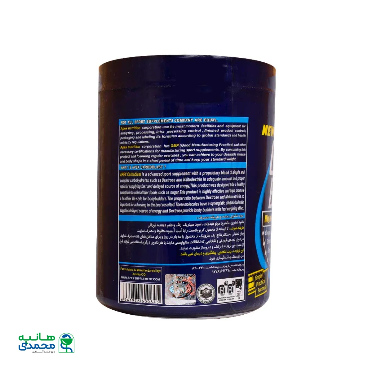 پودر کربو بلاست اپکس با داشتن مقادیر مناسبی از کربوهیدرات در هر اسکوپ، بدن شما را بزرگتر و قدرتمندتر میکند. ورزشکارانی که به تازگی ورزش بدنسازی را شروع میکنند و لاغر اندام هستند، بنابر تشخیص مربی میتوانند میزان مصرف کربوهیدرات خود را بالاتر ببرند. کربوهیدرات در غلات، سیب زمینی، برنج، نان و… وجود دارد اما مصرف زیاد آن میتواند به مرور آزار دهنده باشد و فرد نسبت به این نوع مواد غذایی بی میل شود. برای همین میتوان از پودر کربو بلاست استفاده کرد که هم جذب، هضم و طعم بهتری دارد. این محصول توسط برند ایرانی مشهور اپکس به بازار عرضه شده و در 2 اسکوپ 96 گرم کربوهیدرات خالص دارد. در آخر پیشنهاد میکنیم برای آشنایی بیشتر با این ماده غذایی، مقاله “نقش کربوهیدرات در بدن چیست ؟” را مطالعه نمایید.
