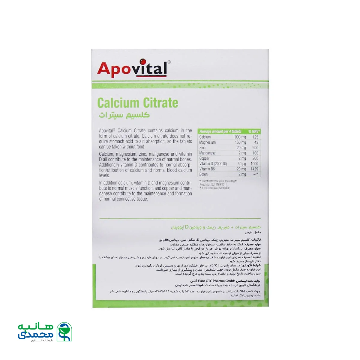 پرسش و پاسخApovital Calcium Citrate Magnesium Zinc And Vitamin D 30 Tabs
