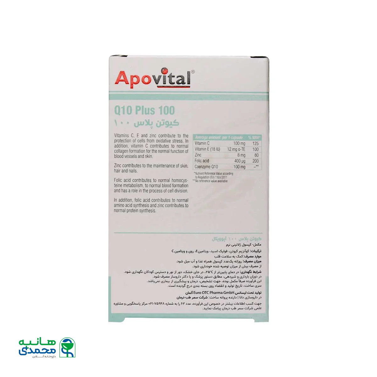 مشخصات کلیApovital Q10 Plus 100 40 Capsules