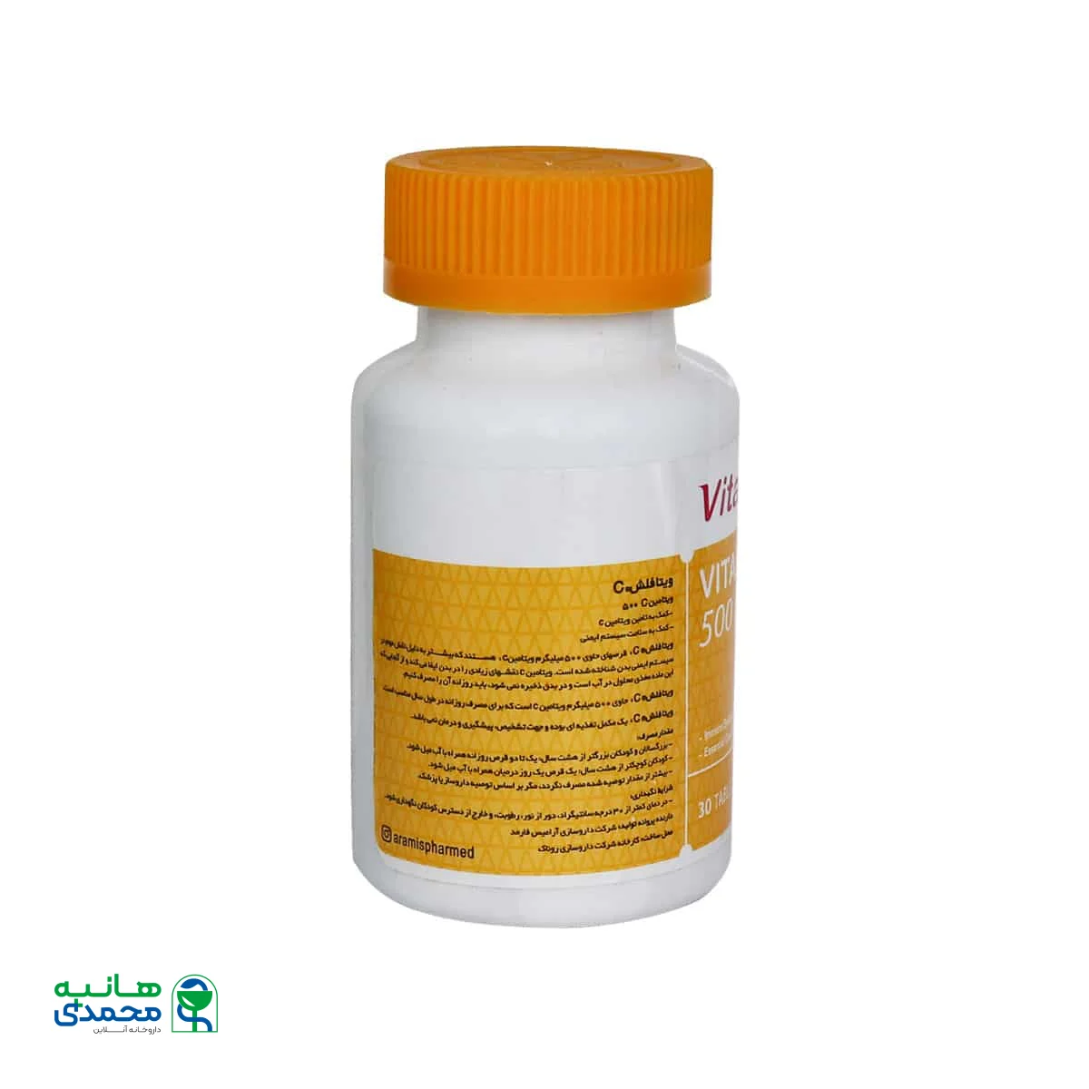 قرص ویتافلش C 500 میلی گرم آرامیس فارمد حاوی 500 میلی گرم ویتامین ث در هر قرص است که برای سنتز کلاژن و مواد داخل سلولی بافت‌های بدن، تقویت عروق خونی، غضروف‌ها، استخوان‌ها، دندان‌ها، پوست و تاندون‌ها ضروری است. همچنین مصرف این قرص برای ترمیم سریع تر زخم و افزایش مقاومت در برابر عفونت و بیماری‌ها مفید است. همچنین به جذب آهن کمک می‌کند و به منظور افزایش جذب گوارشی آهن به کار می‌رود. برای اطلاع از قیمت قرص ویتامین C به داروخانه آنلاین دکتر هانیه محمدی مراجعه نمایید.