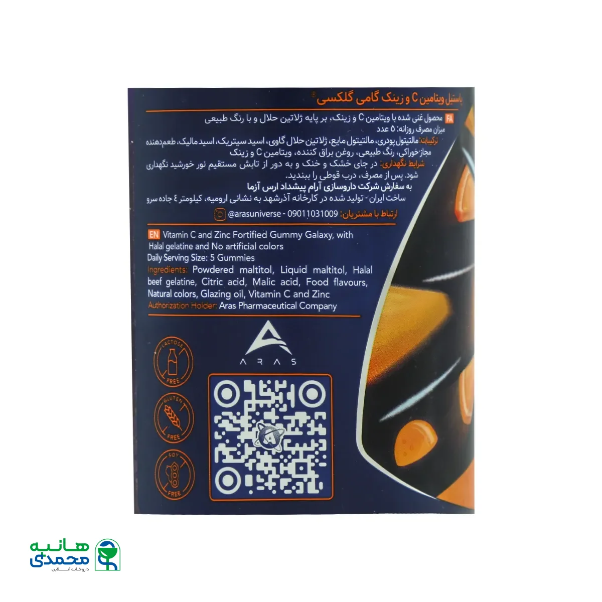 مشخصات کلیAras Universe Gummy Galaxy Vitamin C And Zinc 60 Gummies
