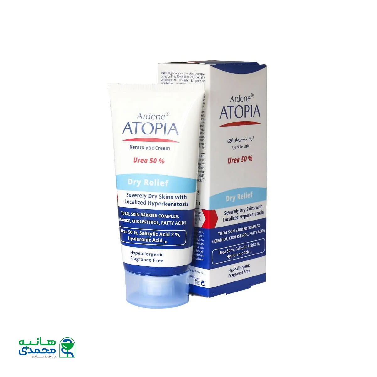 کرم اوره 50 درصد اتوپیا آردن به واسطه داشتن 50 درصد اوره و اسید سالیسیلیک یک لایه بردار قوی بوده و لایه شاخی و فرسوده ناشی از ضخیم شدگی پوست را رفع میکند. از رشد و تکثیر میکروارگانیسمهای مضر با دارا بودن اسید سالیسیلیک جلوگیری میکند. همچنین با دارا بودن گلیسرین با گرید دارویی سبب افزایش نرمی و رطوبت پوست میشود. علاوه بر آن با دارا بودن اسید هیالورونیک هیدرولیز شده وظیفه محافظت و تقویت سد دفاعی پوست را بر عهده دارد و از تبخیر سطحی آب پوست جلوگیری میکند و سبب مرطوب و شادابی آن میشود. با خرید کرم مرطوب کننده حاوی اوره و استفاده از آن لطافت و شادابی را به پوست خود هدیه دهید.