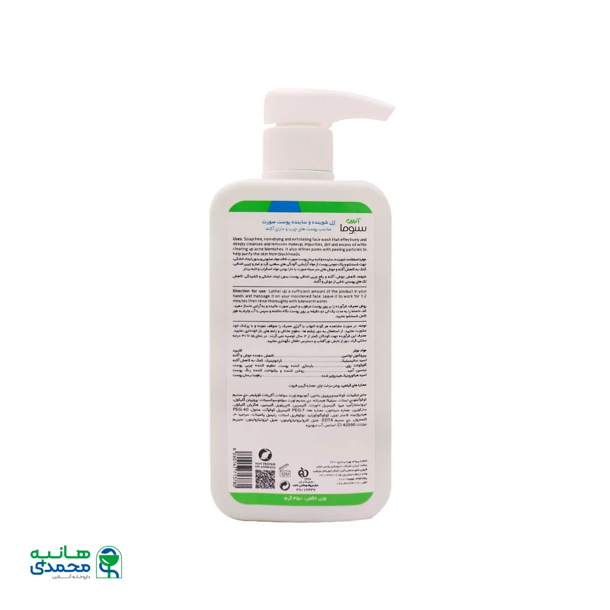 ترکیبات ژل شوینده و ساینده پوست صورت سبوما آردن