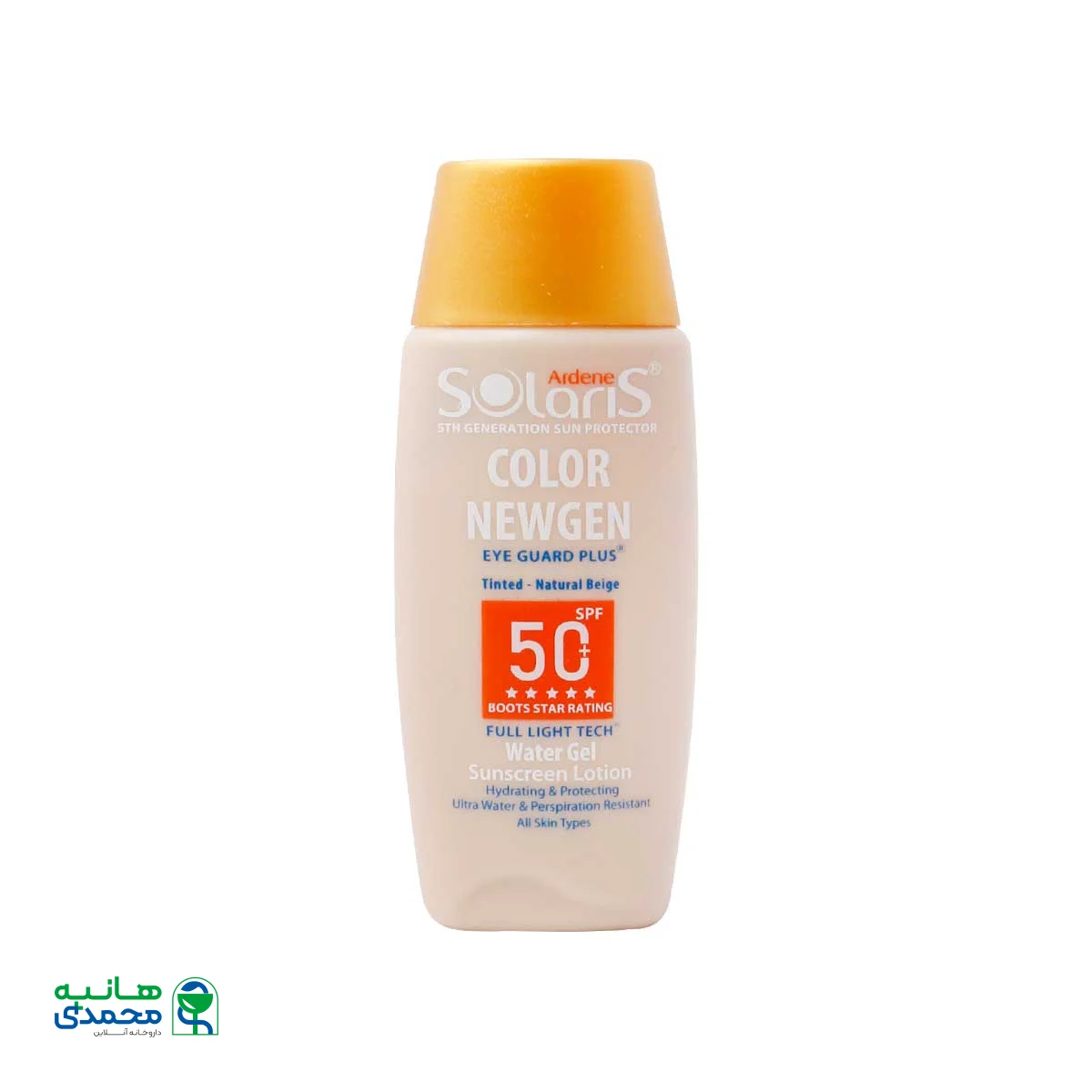 لوسیون آبی ضد آفتاب فاقد چربی spf50 کالر نیوژن سولاریس آردن متعلق به شرکت پارس حیان بوده و مناسب انواع پوست است. فرمولاسیون بسیار سبک با قابلیت جذب و پخش سریع آن شما را شگفت زده خواهد کرد. این ضد آفتاب در دو رنگ بژ روشن و بژ طبیعی جهت محافظت بالا و طولانی مدت پوست تولید و به بازار عرضه شده است. این فرآورده با استفاده همزمان از جاذبهای شیمیایی و بازتاب دهنده اشعه ماورای بنفش نور خورشید بدون ایجاد چربی اضافی و چسبندگی بر روی پوست، سبب محافظت بالا در برابر کلیه موجهای اشعه ماورای بنفش شامل R/UVA/UVB و نور آبی شده و به تامین رطوبت مورد نیاز پوست و جلوگیری از خشکی و رفع احساس کشیدگی کمک شایانی مینماید.