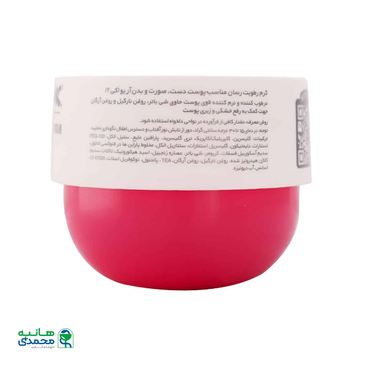 - حاوی شی باتر، روغن نارگیل و روغن آرگان