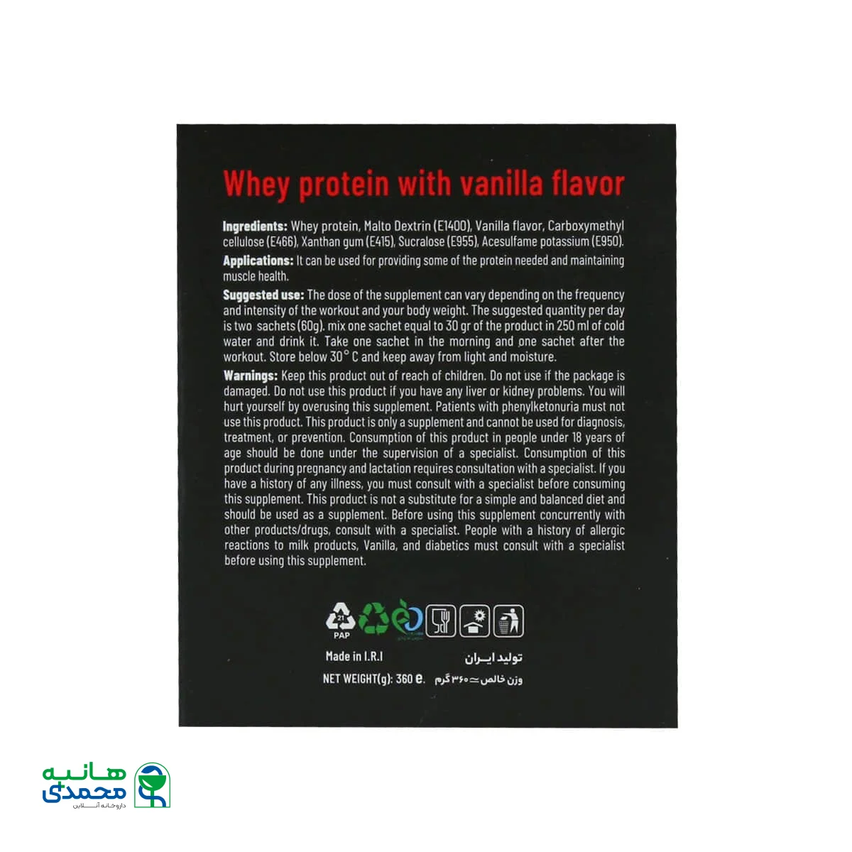 • حاوی 22 گرم وی کنسانتره در هر ساشه
