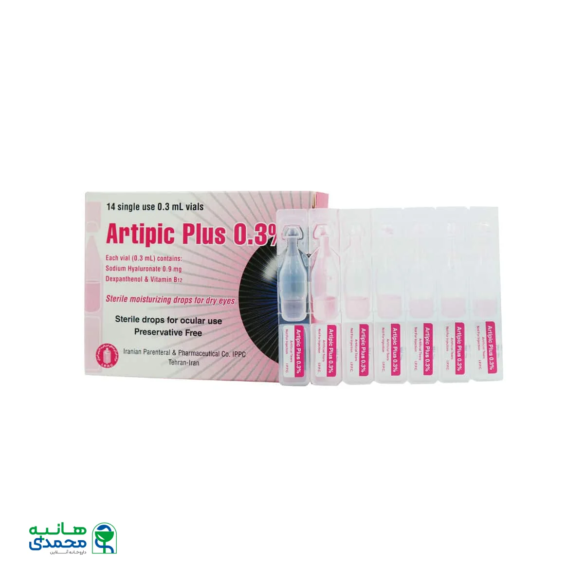 اشک مصنوعی آرتیپیک پلاس 0.3 درصد یک قطره چشمی موثر جهت تسکین خشکی و تحریکات چشمی است. این محصول در ترکیبات خود سدیم هیالورونات را جای داده است که باعث ماندگاری رطوبت طبیعی چشم میشود. به کار رفتن دکسپانتنول در آرتیپیک پلاس 0.3 باعث حفظ رطوبت در سطح چشم به مدت طولانیتر میشود. از آن سو ویتامین ب12 علاوه بر حفظ رطوبت چشم، جلوگیری از تحریک آنژیوژنز را به دنبال دارد.