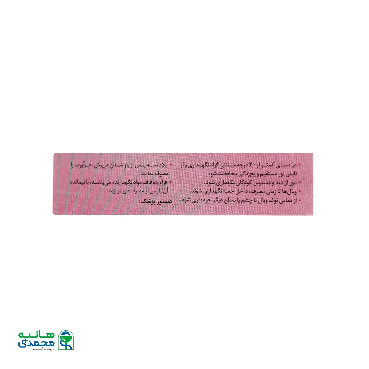 از مصرف فراورده تاریخ گذشته و یا ویال تک دوز آسیب دیده خودداری کنید.