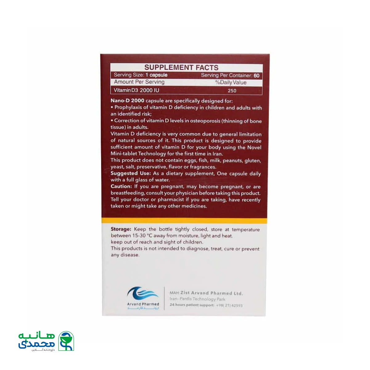 مشخصات کلیArvand Pharmed Nano Vitamin D 2000 IU 60 Tablets