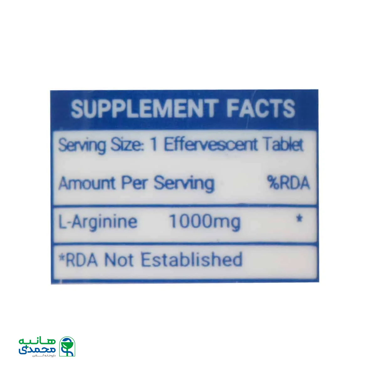 قرص جوشان ال آرژنین 1000 میلی گرم آریا دارو 20 عددArya Daru L Arginine 1000 Mg 20 Effervescent Tabs