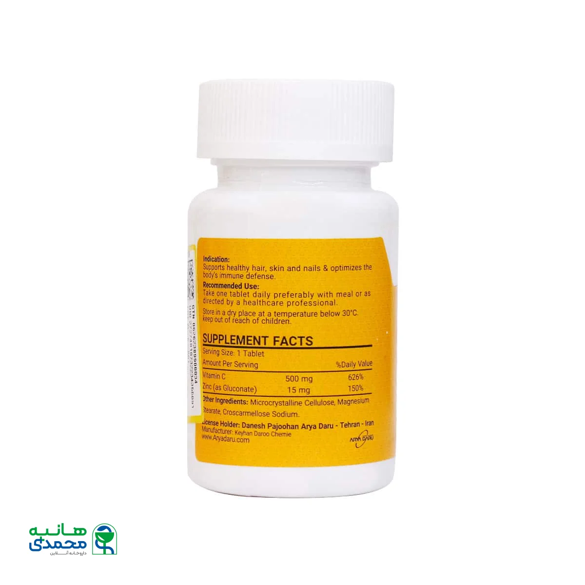 قرص زینک و ویتامین C آریا دارو 30 عددArya Daru Zinc and vitamin C 30 Tabs