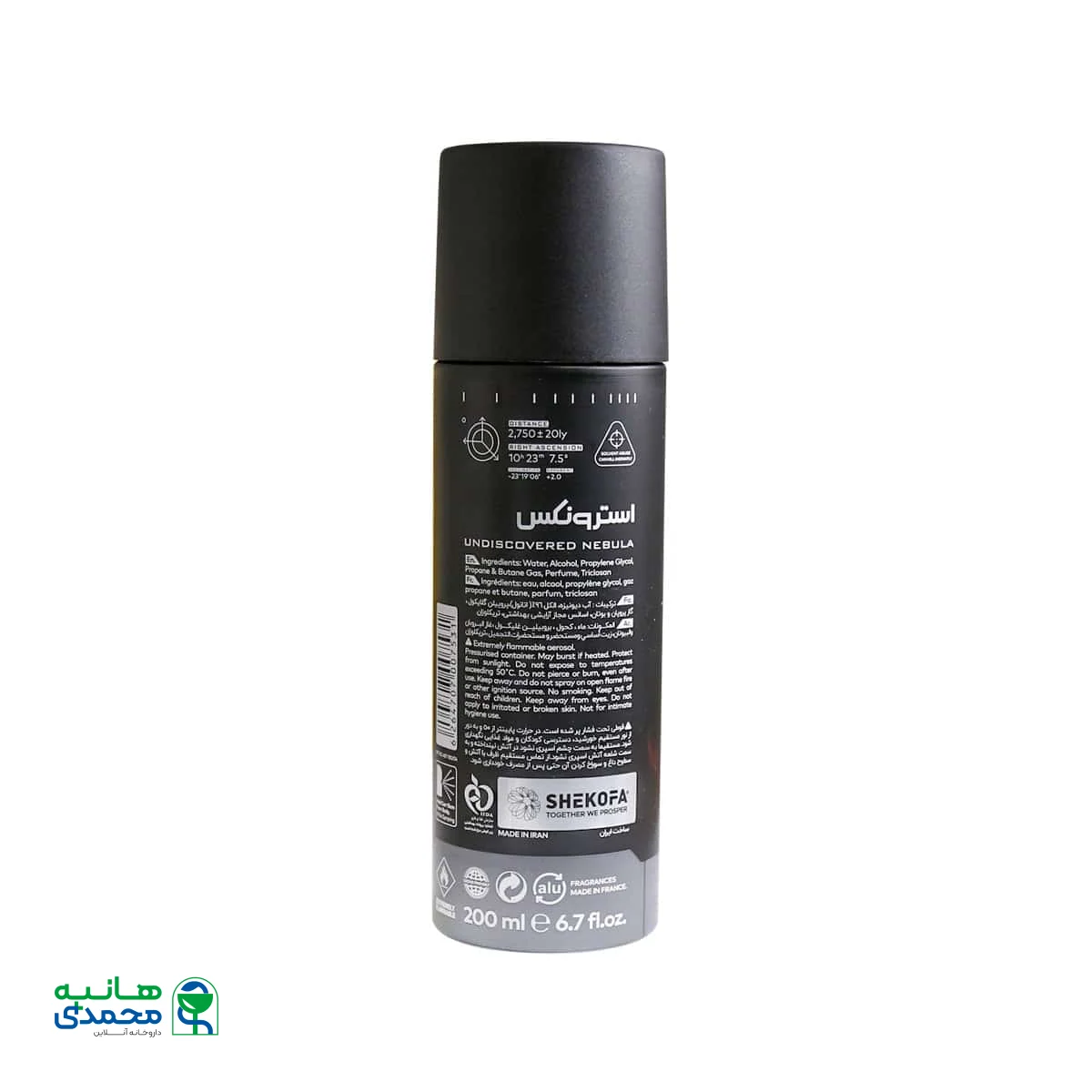 اسپری خوشبو کننده بدن استرونکس مدل Undiscovered Nebula حجم 200 میلی لیترAstronex Body Deodorant Spray Model Undiscovered Nebula