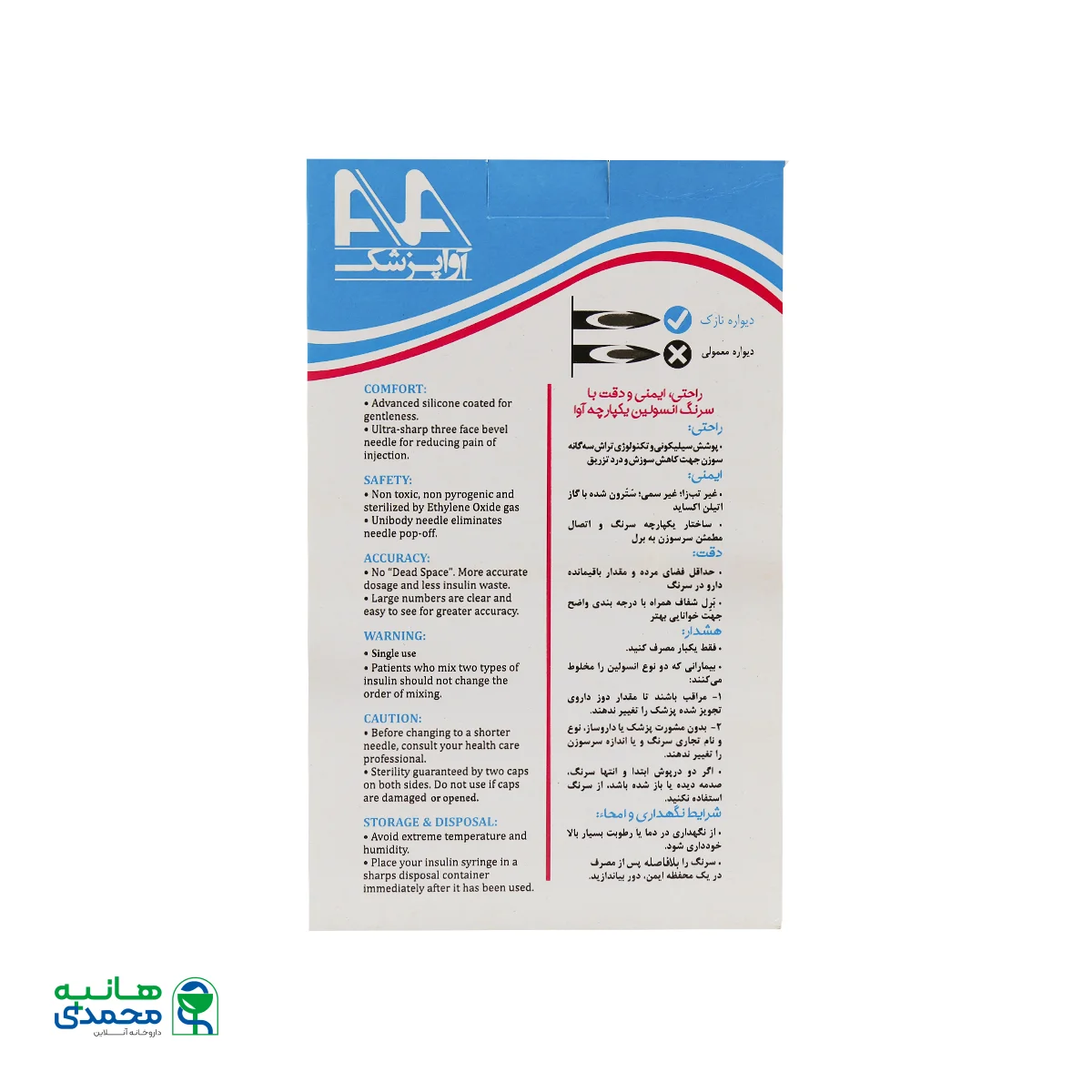 ویژگی های سرنگ انسولین یکپارچه 0.5 میلی لیتر آوا