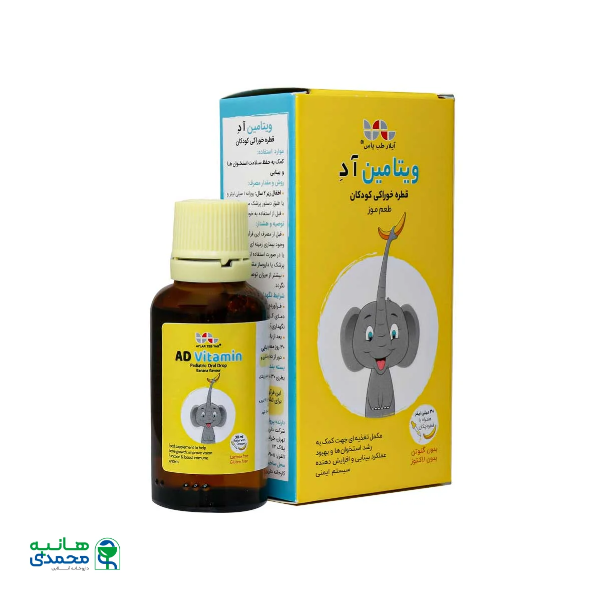 قطره خوراکی ویتامین آ+د آیلار طب یاس محصولی برای تامین ویتامین D و A کودکان است. این محصول به صورت قطره خوراکی استفاده می‌شود و مکملی تغذیه‌ای برای کمک به رشد استخوان‌ها و بهبود عملکرد بینایی و افزایش دهنده سیستم ایمنی است.