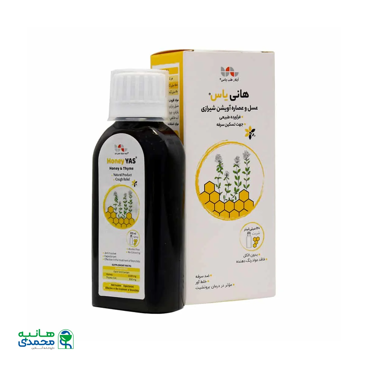 شربت هانی یاس آیلار طب یاس یک محصول کاملا طبیعی است که در درمان سرفه و برونشیت اثرگذار بوده و خاصیت خلط آوری دارد. شربت Honey yas آیلار طب در ترکیبات خود حاوی مقادیر قابل توجهی عسل و عصاره آویشن شیرازی است. عسل خواص ضد میکروبی، ضد التهاب و آرامش بخش دارد. بدین وسیله به کار رفتن آن در شربت ضد سرفه از طریق تسکین تحریک و التهابهای موجود در مجاری تنفسی، به کاهش سرفه کمک میکند. از آن سو آویشن شیرازی ترکیبی است که به عنوان یک گیاه موثر به کاهش التهاب، تسکین سرفه و برونشیت کمک موثری مینماید. خوشبختانه این فراورده فاقد مواد رنگ دهنده و الکل است و بعد از استفاده هیچ گونه عارضه جانبی خاصی به دنبال ندارد. به همین خاطر کودکان بالای 4 سال و بزرگسالان میتوانند از شربت هانی یاس استفاده نمایند.