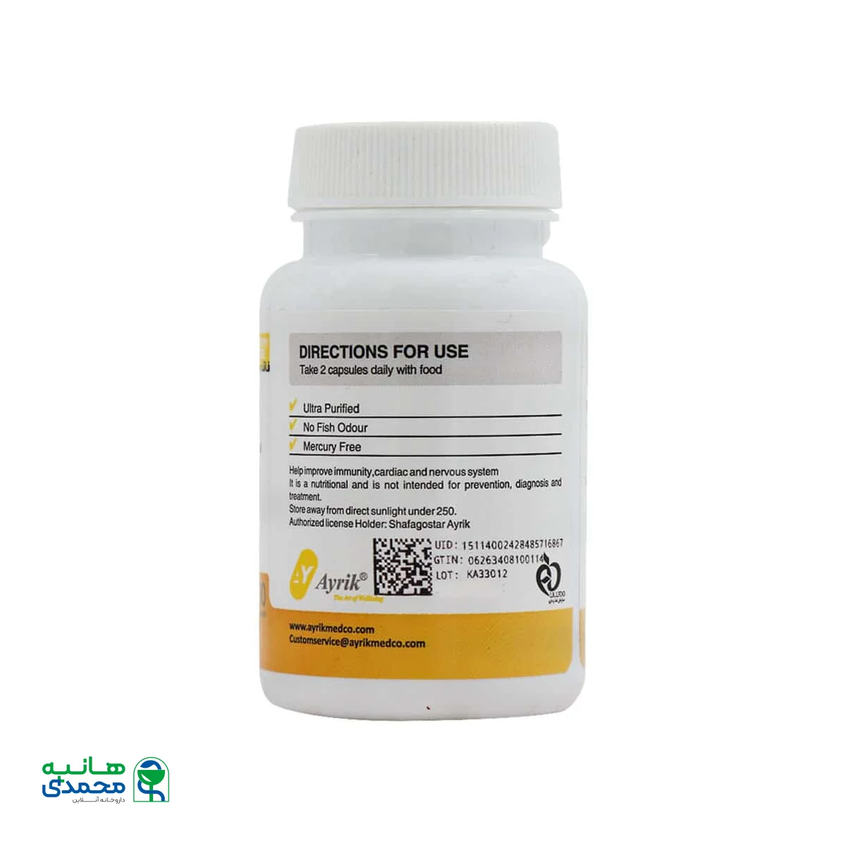 داروخانه آنلاین دکتر هانیه محمدی با تامین مستقیم محصولات از وارد کنندگان و تولید کنندگان، از جمله کپسول امگا 3 آیریک، اطمینان از اصالت کالا و قیمتهای رقابتی را برای مشتریان فراهم مینماید. این داروخانه با به روزرسانی مداوم قیمتها و ارائه تخفیفهای دورهای، امکان خرید اقتصادی را مهیا میسازد. همچنین شما میتوانید با رعایت شرایط ارسال رایگان، هزینهای بابت رفت و آمد و ارسال سفارش نداشته باشید و به راحتی آن را در کمترین زمان ممکن درب منزل یا محل کار دریافت نمایید.