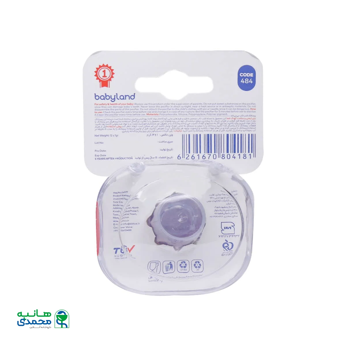 قبل از مصرف پستانک را به مدت 5 دقیقه در آب بجوشانید و استریل نمایید.