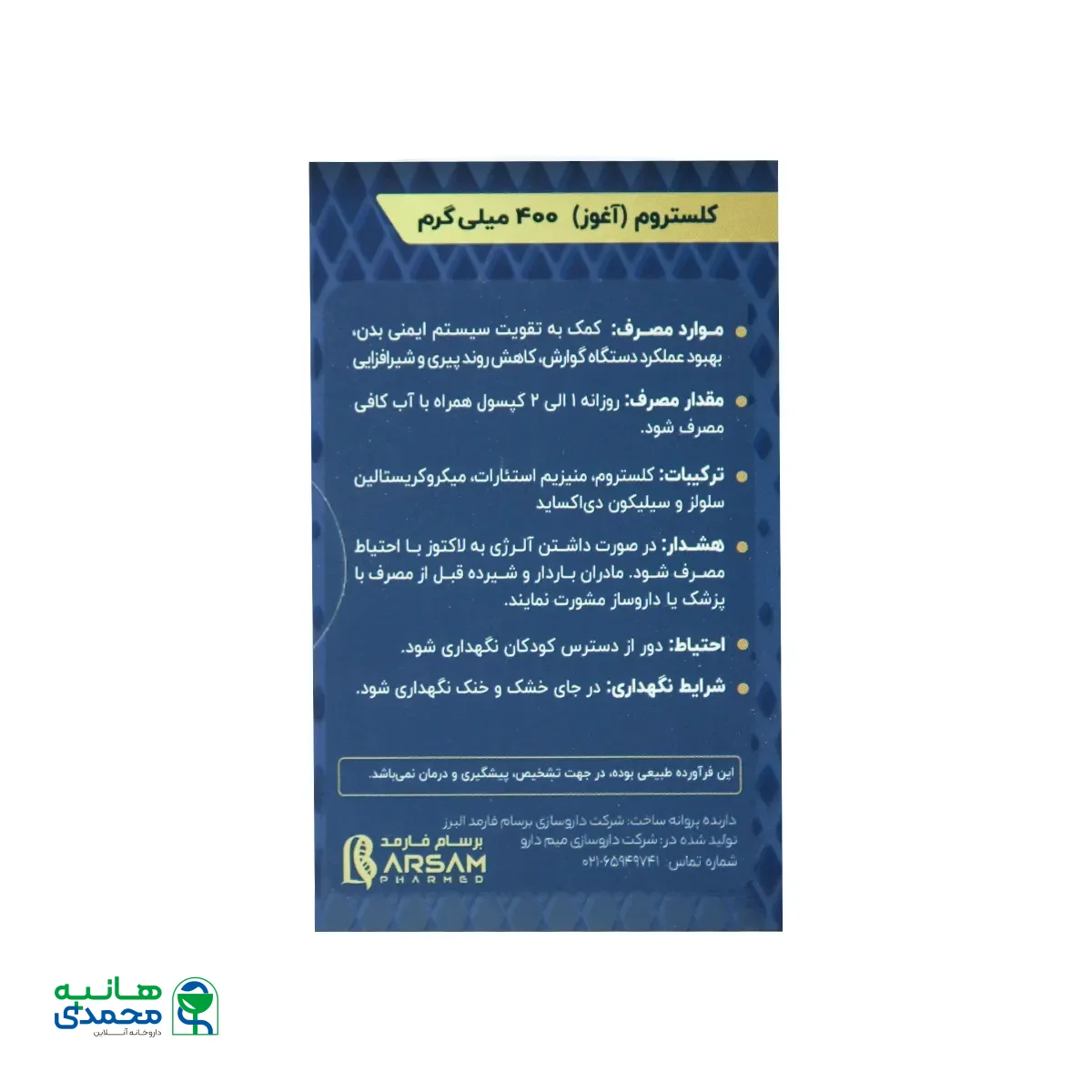 جدول ترکیبات کپسول کلستروسام برسام فارمد