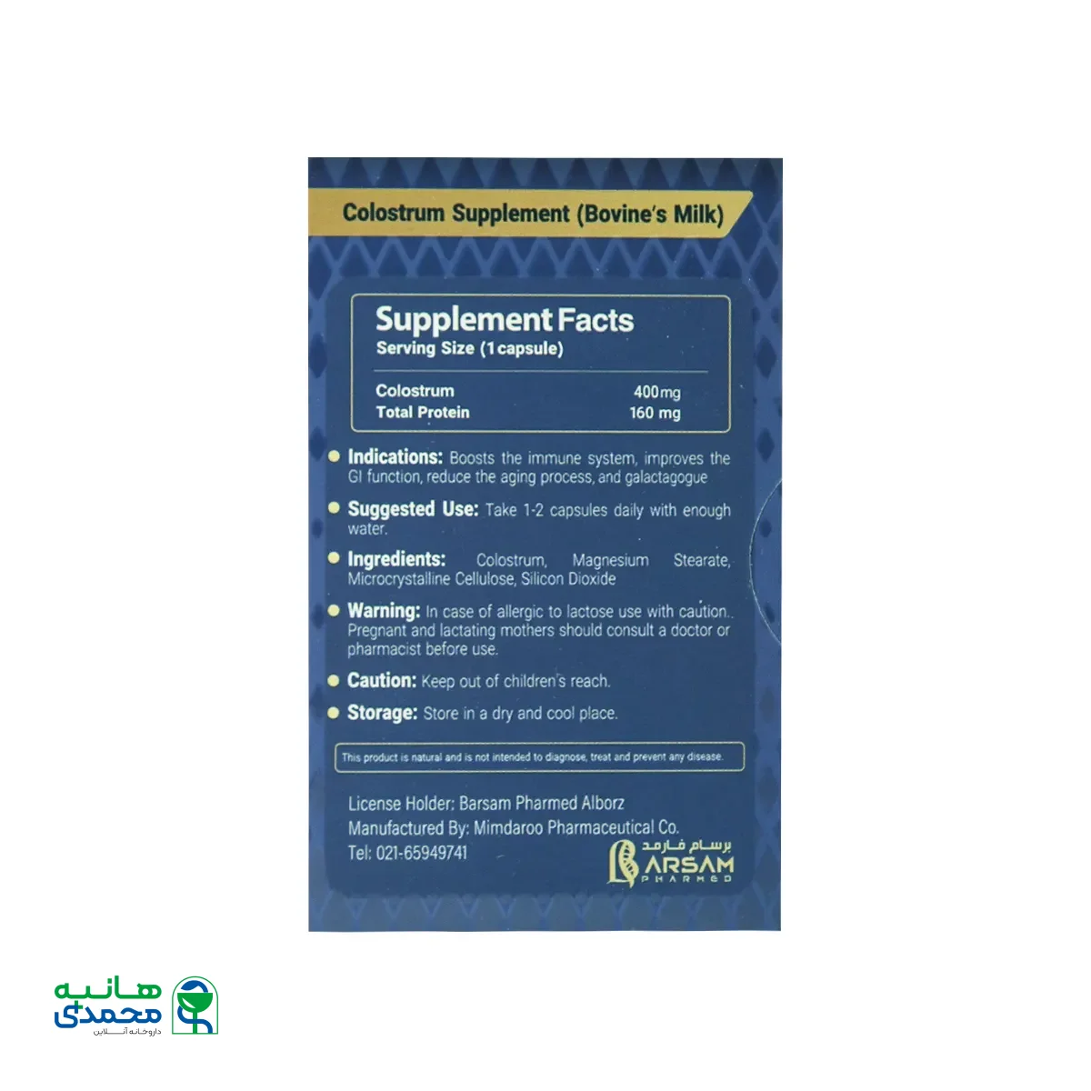 کپسول کلستروسام برسام فارمد فرآوردهای قدرتمند در تقویت سیستم ایمنی و گوارشی است. این محصول با داشتن مقادیر مناسبی از شیر آغوز گاو به شما کمک میکند تا بخشی از مواد مغذی مورد نیاز بدن خود را به دست آورید. خواص آنتی اکسیدانی این محصول به شما کمک میکند تا بدنتان در مقابل رادیکالهای آزاد بیشتر مقاوم شود و ریسک ابتلا به انواع و اقسام بیماریها کاهش یابد؛ در نتیجه روند پیری هم کاهش مییابد. در هر کپسول این محصول، 400 میلی گرم کلستروم وجود دارد که مقدار بسیار مناسبی برای بدن به صورت روزانه است. برای خرید قرص تقویت سیستم ایمنی بدن به سایت دکتر هانیه محمدی مراجعه فرمایید.