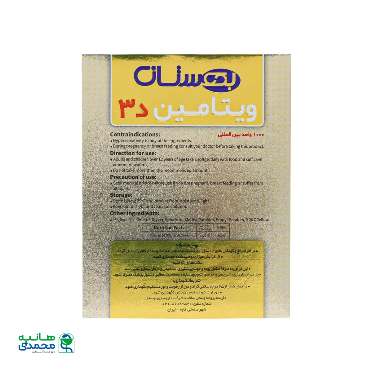 ویژگی های سافت ژل ویتامین د3 1000 واحد بهستان