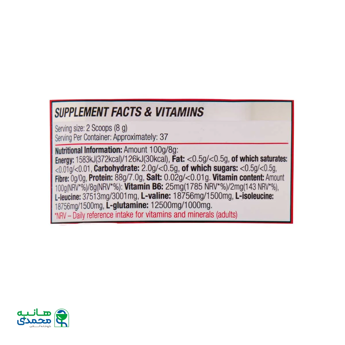 • حاوی اسید آمینه‌های BCAA، گلوتامین و ویتامین B6