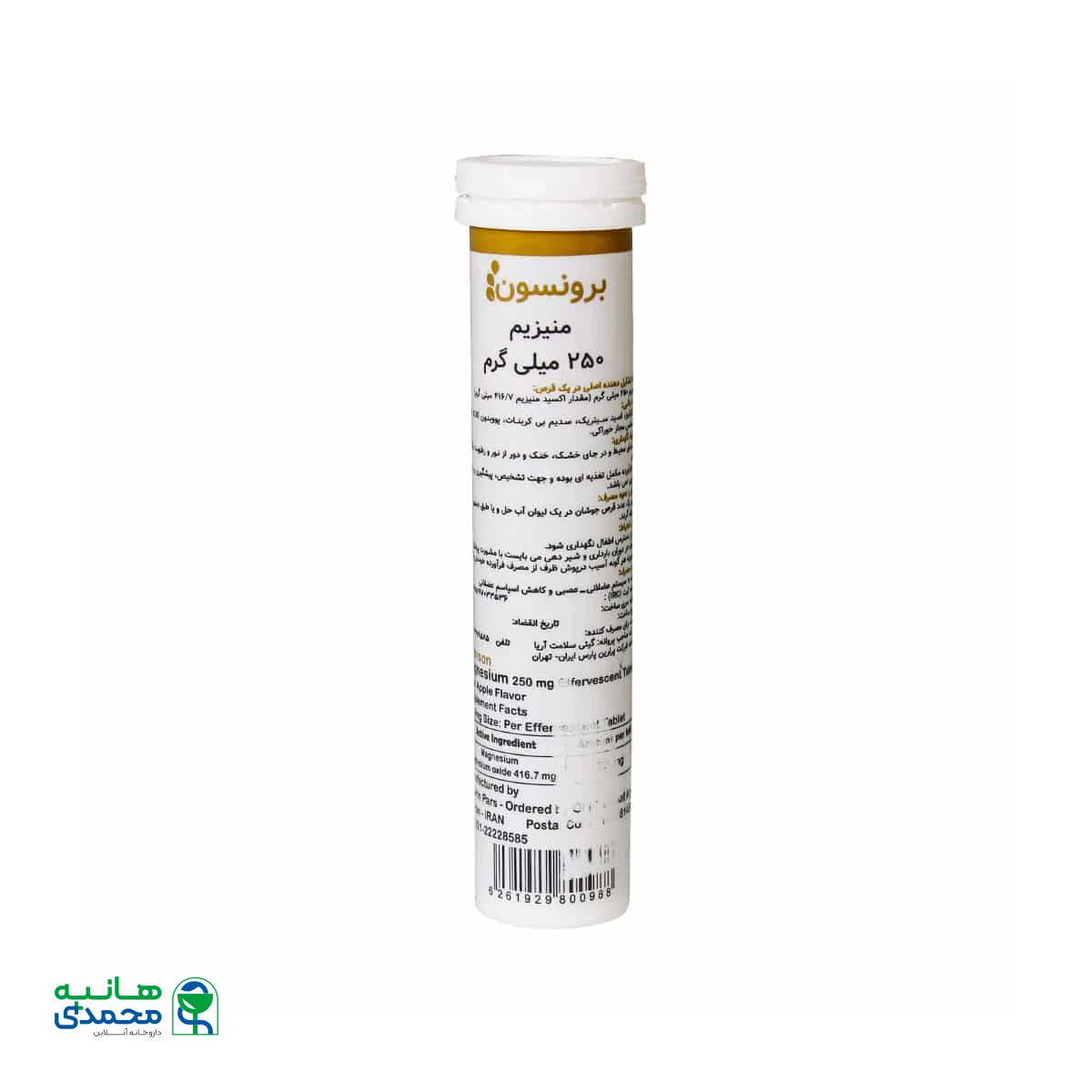 ویژگی های قرص جوشان منیزیم 250 میلی گرم برونسون