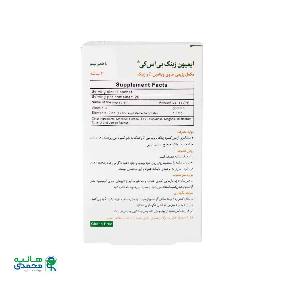 ساشه ایمیون زینک بی اس کی 20 عددBSK Immune Zinc 20 Sachets