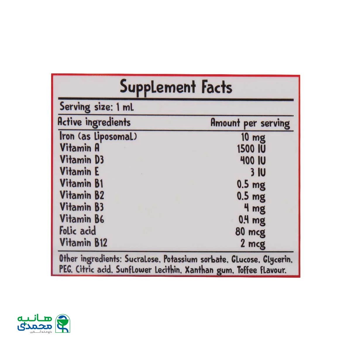 | آهن (لیپوزومال) | 10mg | ** |