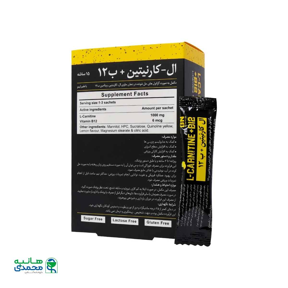 ساشه ال کارنیتین 1000 و ویتامین B12 بنیان سلامت کسری 15 عددBSK Nutrition L Carnitine 1000 mg and B12 15 Sachets