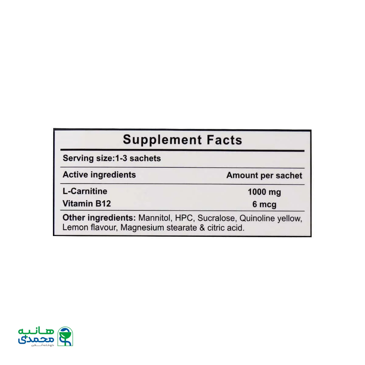 ویژگی های ساشه ال کارنیتین 1000 و ویتامین B12 بنیان سلامت کسری