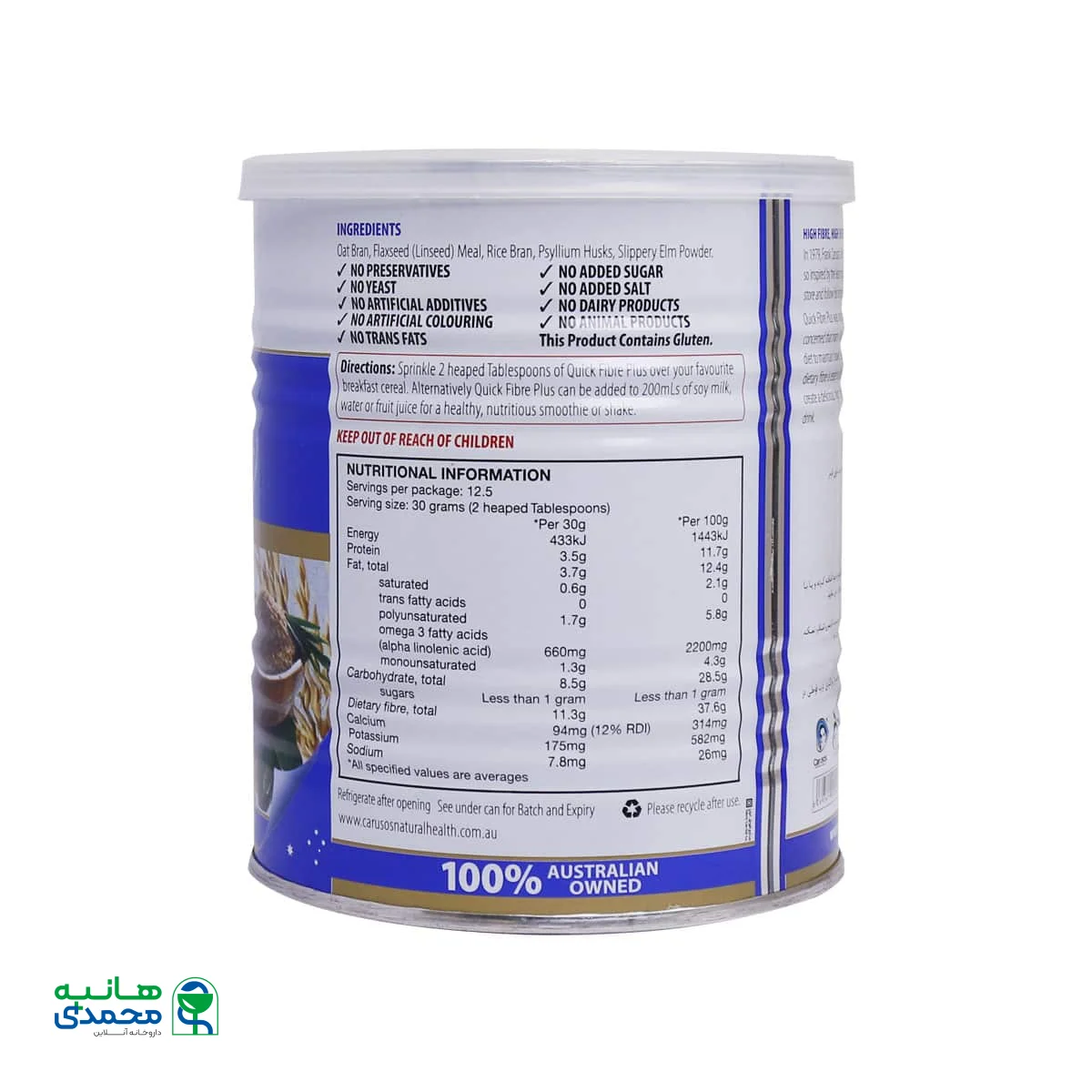 مشخصات کلیCarusos Natural Health Quick Fiber Plus Powder 375 g
