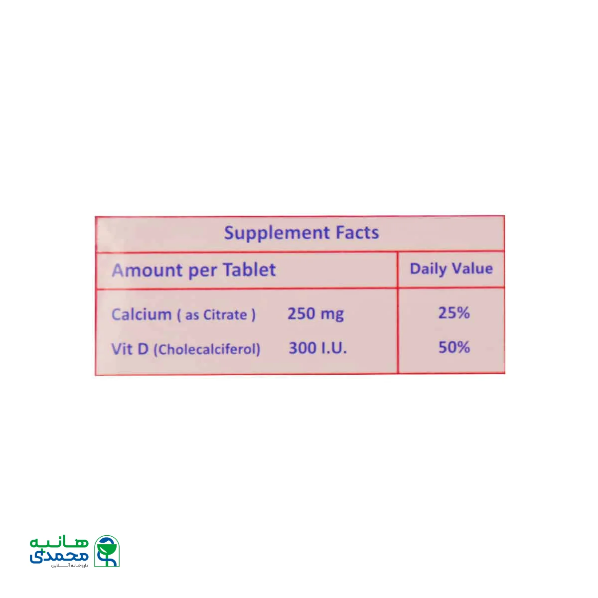 جدول ترکیبات قرص کلسیم سیترات و ویتامین D سنتروویت